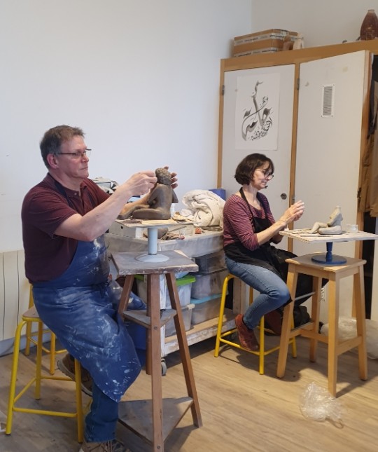 Différentes techniques sont abordées à l’atelier : modelage, colombin, plaque, estampage ou encore la technique du canari.